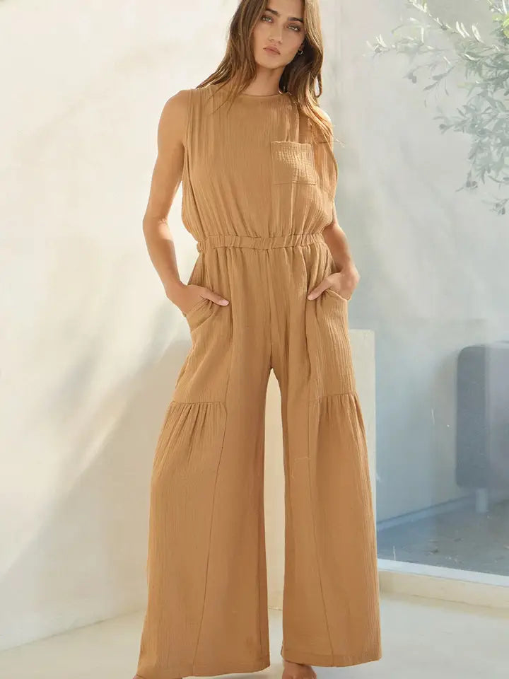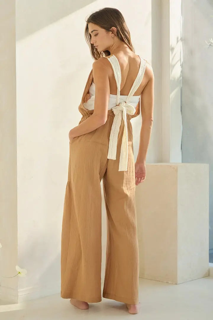 TAN BOW BACK JUMPSUIT