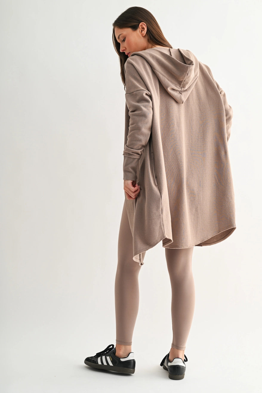 TAN OPEN FRONT HOODIE CARDIGAN