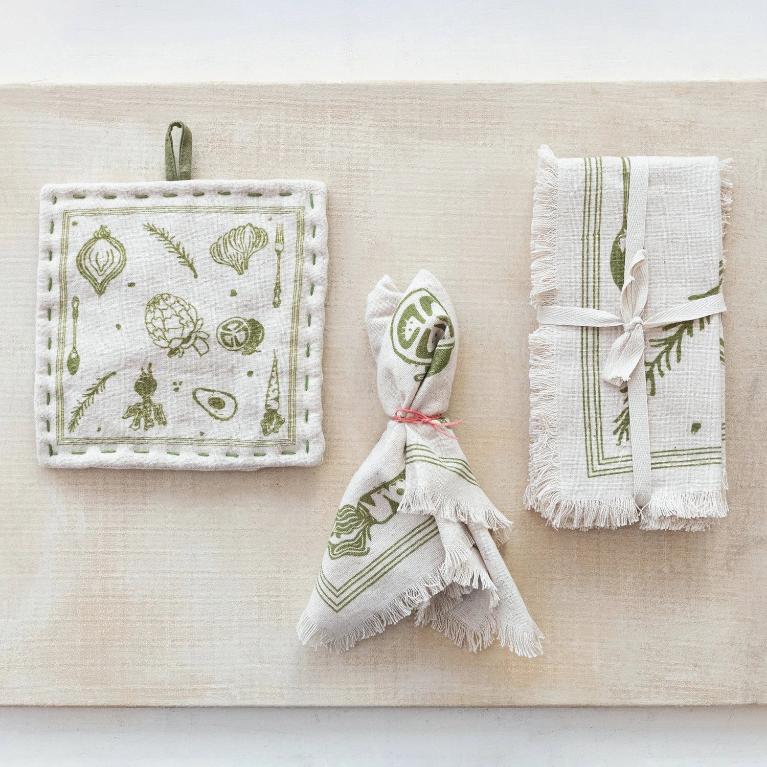 GREEN COTTON & LINEN NAPKIN SET OF 4