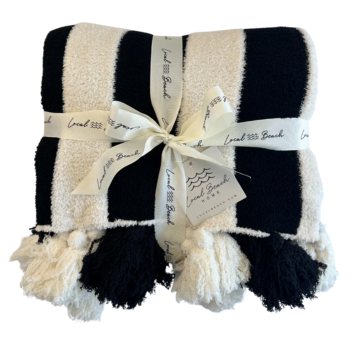 BLACK STRIPED LUXE HOME BLANKET WITH TASSELS
